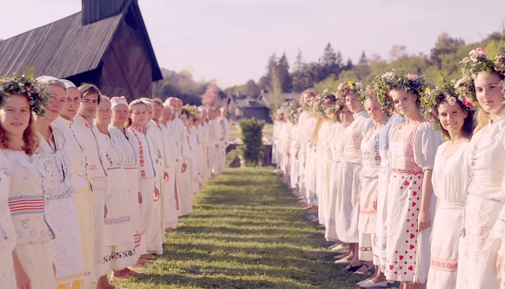 In “Midsommar,” very few scenes are set in dark places. The majority of the film takes place in the bright Swedish summer sunshine, as the members of a commune called the Hårga prepare to celebrate the midsummer solstice. But writer and director Ari Aster (Hereditary) finds the terror in this beautiful environment, crafting a story that may not fit neatly into the horror genre, but is built on psychological fear, unease, and the deterioration of relationships.