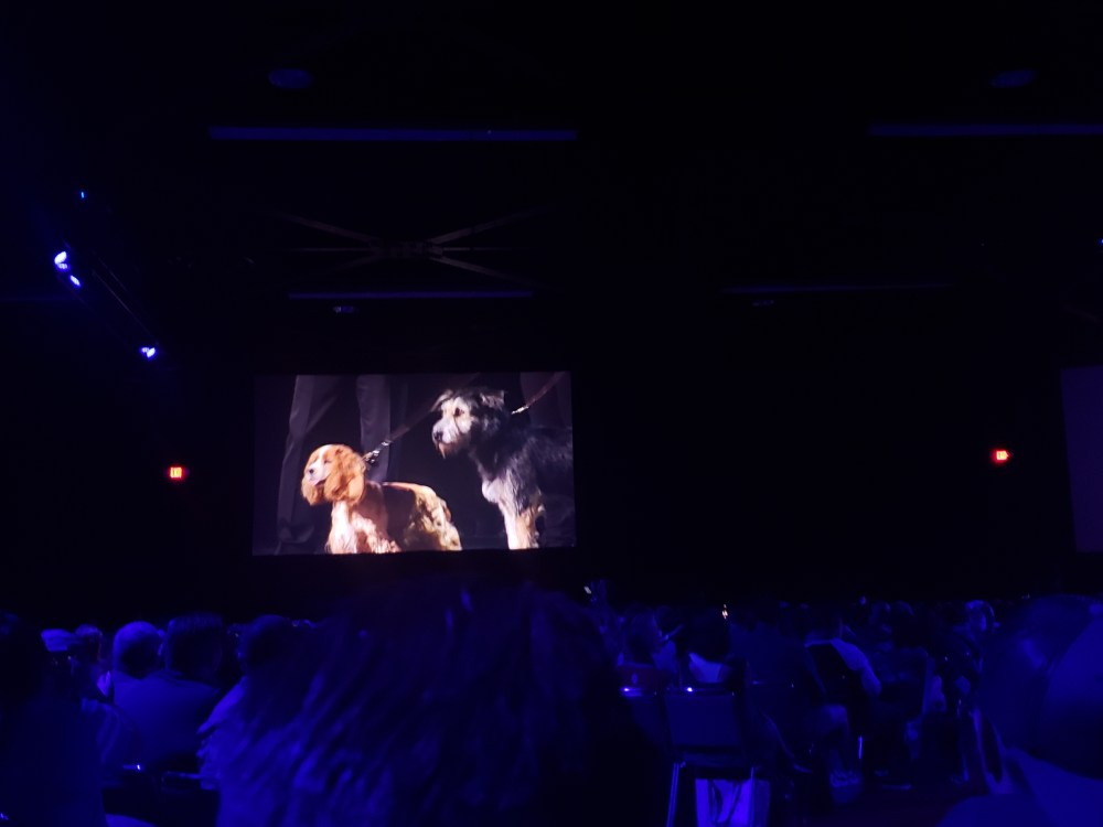 The furry stars of the upcoming live-action “Lady and the Tramp” appeared onstage