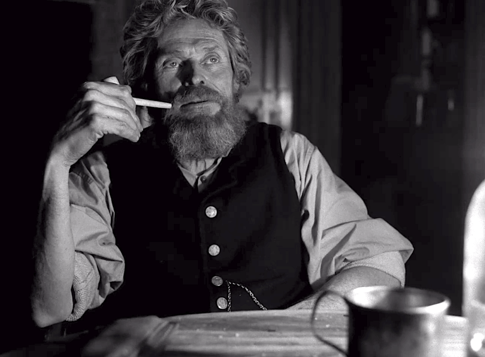 And Pattinson and Dafoe are both mesmerizing to behold in this film. Dafoe is every bit the stereotypical old sea captain, and yet, he brings a bit of himself to the role so that it feels a bit less like a parody and a bit more real. Pattinson continues to make intriguing acting choices with this film, effortlessly making Winslow transition from a man just trying to do a job to a man who has so completely lost his grip on his sanity that he is terrifying to behold.
