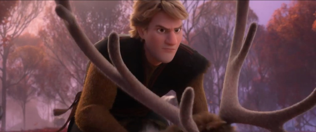 Kristoff (Jonathan Groff) spends most of the movie trying to propose to Anna, in vain, resulting in a solid running gag that isn’t just funny, but results in one of the movie’s best music numbers, and also twists conventions around; in this film, it’s the man who sings a ballad about his feelings, while the women are running off on an adventure. Those songs are written once again by Robert Lopez and Kristen Anderson-Lopez, and while, as in the first film, a mish-mash of genres are represented, there isn’t really a big show-stopping number in the same vein as “Let It Go.” In fact, it feels like a couple of the numbers—combined with the staging of the action—are trying too hard to replicate the success of that now-iconic scene. This is most obvious in “Show Yourself,” the powerful number Elsa belts out at the end of the film. At the same time, almost every song is a winner, from the peppy ensemble number “Some Things Never Change,” to Elsa’s “I want” song, “Into the Unknown,” to Kristoff’s 80’s-inspired ballad “Lost in the Woods.” The songs are always used in a way that furthers each character’s story, as opposed to interrupting the action.