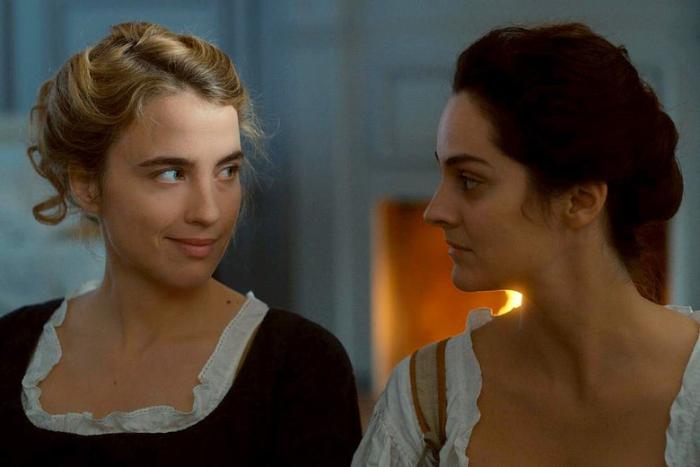 There is a lot of beautifully written dialogue in Sciamma’s screenplay (and the comparison of Marianne and Héloïse with the myth of Orpheus and Eurydice is a poignant one) but there is so much said about Marianne and Héloïse’s relationship without Merlant and Haenel needing to say a word. There is a lot of looking in this movie (stolen glances, shared looks, intense pondering), and the way that Merlant and Haenel gaze at each other (sometimes playfully, often longingly, occasionally quizzically) speaks volumes. This story centers around a lesbian relationship, and is one of the most authentic examples of the female gaze I’ve seen, not just due to the female presence behind the camera (this film notably has a female cinematographer, Claire Mathon), but also due to the fact that Sciamma and Haenel are lesbians as well. We also see a heartening friendship develop between Marianne and the young maid Sophie (Luàna Bajrami) when Marianne and Héloïse help her in a time of need. The cast is intimate, and there are no male characters (the only men we see on screen are in crowd shots that bookend the story) but the oppression women face from men is present nonetheless, whether it’s Héloïse being forced to marry well, or the relatively independent Marianne being restricted from having more success with her art by men. Both Merlant and Haenel are outstanding; they have an undeniable presence on screen, and an easy way with each other that makes their characters’ attraction to each other believable.
