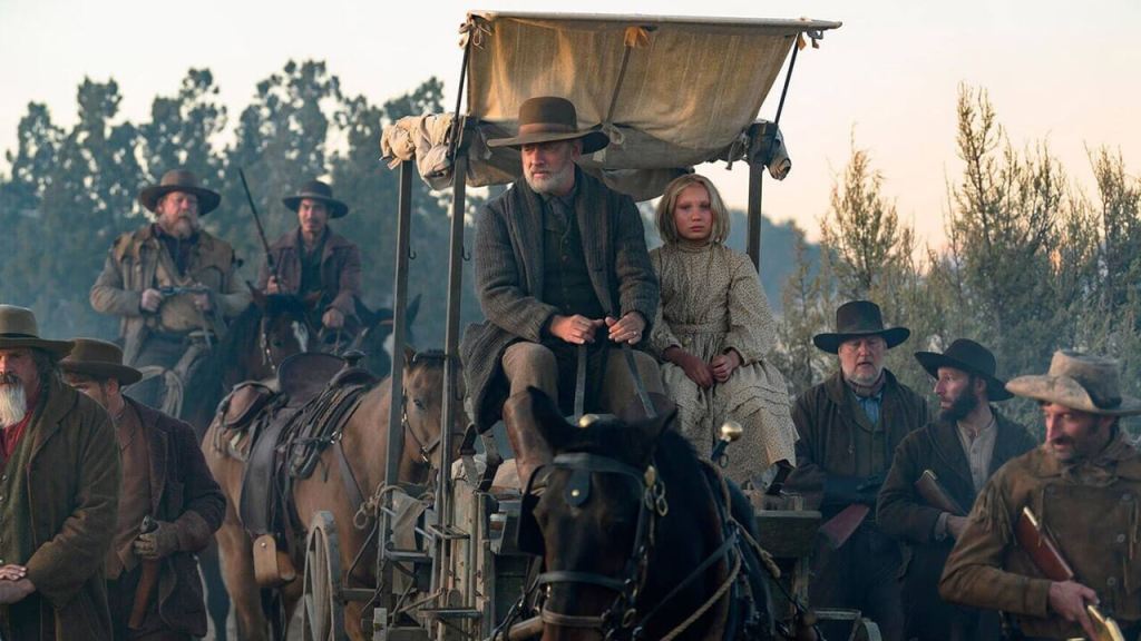 That doesn’t make the relationship between Kidd and Johanna any less moving or that portion of the story any less effective, however. The film succeeds at making us care about these characters, who are both loners—Johanna has lost almost her entire family, while Kidd’s work is solitary and he has been separated from his wife for years—and the love and companionship that they can each bring to the other. It helps a lot to have two capable actors in the leads. Zengel is a relative newcomer but she is incredibly natural in the role. Her character is fierce, but also vulnerable, and she brings both of these qualities to Johanna very effectively. This is really Hanks’ movie, however, to the point where “News of the World” feels like a vehicle just for him that would fall apart without his presence or star power. Kidd is the sort of character that we love to see from Hanks, and that is perfect for him, especially at this point in his career. Kidd is gruff and rough around the edges, but there is also a warmth and charisma about him, not to mention the fact that he seems to have a moral code guides his actions.