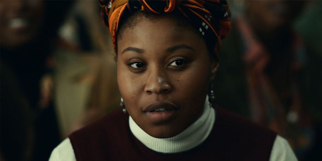 Kaluuya is electrifying throughout these scenes. Mostly he is rather quiet and stoic, but when he is speaking publicly, there is power and force to his words (see, for example, just over halfway through the film, when Hampton and a crowd of supporters chant “I am a revolutionary”). Kaluuya nails Hampton’s vocal inflections, but he more than physically embodies the role. Even though Hampton is not the focus of the film, we get a good sense of him, especially in the more intimate moments with his girlfriend, Deborah Johnson (Dominique Fishback). A fellow activist and poet, Johnson is more than just the supportive woman lingering in the background. Even though I would have loved to have seen more of her in this movie, I’m glad that King spent a good amount of time developing the relationship between her and Hampton.