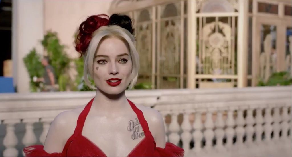 After Harley is captured by the Corto Maltese government, she is brought to meet with dictator Silvio Luna (Juan Diego Botto). Before she sees him, Harley is cleaned up and made over, her hair placed in a fancy up-do, her body clad in a very feminine gown made of layers of tulle (and bright red, a homage to her traditional red and black harlequin garb). A swoony montage portrays the Silvio—who wants to make Harley his bride—wooing her, and Harley is taken with him immediately. But the realization that he wants to use his power and Project Starfish to hurt others prompts the hitherto lovestruck Harley to deliver these lines of dialogue, which Robbie says in a voice that is both confident in her words and her actions, but also resigned and sad that it has come to this: