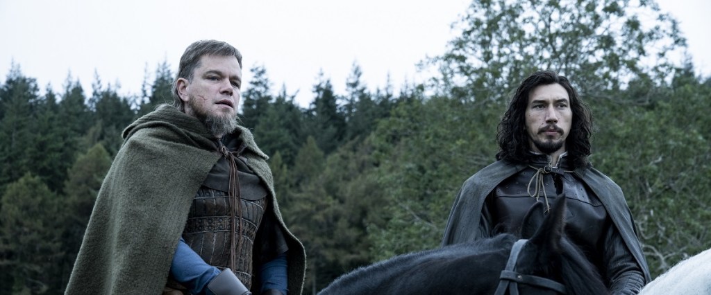 Screenwriters Nicole Holofcener, Matt Damon, and Ben Affleck (the pair’s first collaboration as co-writers since their 1997 film “Good Will Hunting” put them on the map) divide their “Rashomon” style screenplay into three chapters, each told from a different character’s perspective and set over the course of several years beginning in the late 1370s. Sir Jean de Carrouges (Damon) and Jacques Le Gris (Adam Driver) are friends and squires serving in France, with Carrouges in particular being renowned for his prowess on the battlefield. Le Gris becomes an advisor and close confidant to Carrouges’ overlord, Count Pierre d’Alençon (Affleck), and is tasked with collecting funds owed to Pierre. Carrouges, with his need for both money and an heir, marries the disgraced but wealthy Lady Marguerite (Jodie Comer). These characters circle each other in a series of land disputes and jockeying for accolades, events that ultimately lead Le Gris to Marguerite’s door while she is home alone.