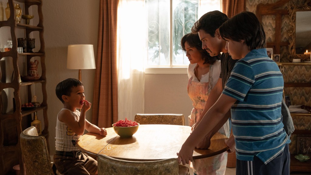 Despite all this opposition, when Richard gets an idea, he pursues it doggedly, that determination manifesting itself through Garcia’s earnest screen presence. When he gets inspired to try to make a new chip flavor that will appeal to his people who want more flavors in their food, the fiercely supportive Judy and the rest of his family step up to help him, both in perfecting the actual product, and in getting acquainted with the business side of things so he can bring it to the company’s CEO (Roger Encino, played by Tony Shalhoub). It’s worth noting, however, that as much as the real life Richard asserts the truth of this story, a 2021 report in the Los Angeles Times revealed that according to an internal investigation at Frito Lay, the company credits him for his insights into Hispanic culture, but not the actual invention of the flavor. Like a lot of biopics, it’s up to the viewer to discern when and where the truth has been stretched to fit the narrative.