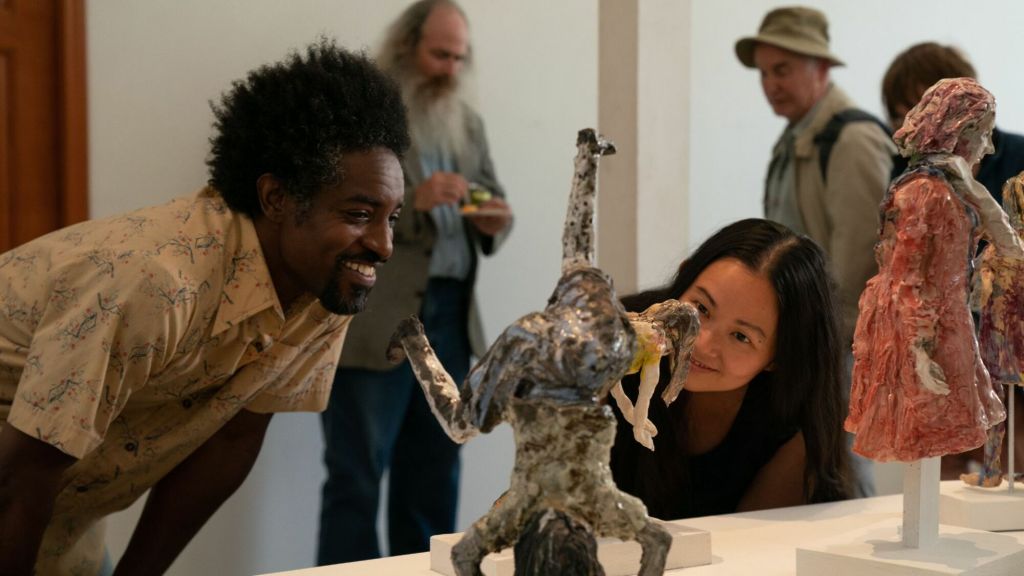 So much of Reichardt’s previous work, from Wendy and Lucy to her most recent film, First Cow, has centered around characters existing on the fringes of society, and Showing Up is no different, even if at first blush Lizzy appears to have a lot going for her, from her apparently privileged background to the promise of a career turning point with her upcoming gallery show. But the constant presence of Jo, and the flippant reactions of her mother to her work, are evidence enough that she hasn’t exactly “made it.” Exterior forces—the need to work a profitable job, for one thing—are always holding her back from being able to fully allow her creativity to soar. In this way, Reichardt and her frequent writing partner Jon Raymond parallel her journey with that of the pigeon’s, a creature that the majority of people dismiss as vermin (a colleague at work even laughs at her when he finds out she’s caring for the bird). The idea that as the pigeon gains the strength to eventually take flight as Lizzy metaphorically does the same sounds trite on paper, but is realized so lovingly through the film’s script and serene imagery. Reichardt wisely composes every scene to deliver just the right amount of information we need to know about Lizzy’s family, from her brother—who seemingly disappears after spending an inordinate amount of time digging holes in his yard, and whose well-being adds an unexpected layer of tension to the film’s third act—to her father Bill (Judd Hirsch), who we can glean from the shelves of pottery in his home is also an artist. At her gallery show, Lizzy notably pays the most attention to his observations of her work. And similarly to her, there’s a lack of assertiveness to him; a couple who Bill claims are his friends frequently stop over to stay at his house for extended periods of time, but Lizzy worries, believing they are taking advantage of his hospitality (and, perhaps, loneliness). Interspersed throughout are serene scenes of creativity occurring at the art foundation where Lizzy works, from figure drawing to abstract dances to weaving. There aren’t any passionate fits of creative fury captured here, but Reichardt and cinematographer Christopher Blauvelt’s camera observes the artists at work with a meditative eye. Even on a deadline, Lizzy works steadily but gently as she removes the limbs from a sculpture and reattaches them in a different position. As with much of Reichardt’s filmography, Showing Up operates at a low pulse, but its messaging—in this case, an advocacy for the importance of the arts and its ability to nurture the mind and the soul in equal measure—is clear. And Reichardt effectively uses that art institution setting to convey the various types of minds and personalities that collide when many creative people are thrown together in one space, from Lizzy and Jo to Eric (André Benjamin, whose flute score beautifully complements the film’s unhurried pacing), the school’s easy-going kiln operator, to Jean, whose excitement over visiting guest artists and the work of her students doesn’t carry over to her own children.