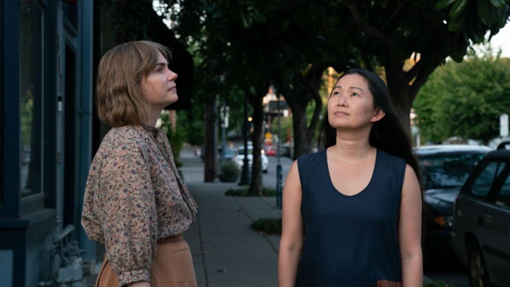 Two of those forces: an injured pigeon, and Jo (Hong Chau), another artist who Lizzy is contrasted to throughout the film. Lizzy is introverted and perhaps not very confident, something Williams (in her fourth collaboration with Reichardt and another brilliant performance in a career filled with memorable roles) conveys through her shuffling gait, hunched posture, and restrained demeanor. She’s virtually incapable of assertiveness, whether it’s asking her mother for a day off to work on her sculptures for an upcoming solo exhibition, practically begging her separated parents to check on her troubled brother Sean (John Magaro), or confronting Jo, from whom she rents her place, to fix her hot water. Jo, on the other hand, is extroverted. She has two big gallery openings coming up. Everyone at the foundation knows her and greets her warmly. When it comes to that aforementioned injured pigeon, when Lizzy finds it on her bathroom floor, a victim of an attack by her cat, she gingerly scoops it up in a dustpan and tosses it out the window, murmuring “go die somewhere else.” The next morning, Jo approaches Lizzy with a box. In it: the pigeon she found, determined to bandage up its broken wing and take care of it. The pair’s different personalities are even evident in their art styles: Lizzy creates well-defined forms out of brittle clay, while Jo’s sculptures are abstract, crafted from recycled, pliable materials. But for all of Jo’s surface-level generosity, there’s an air of phoniness to the personality Jo is projecting. As soon as she fixes up the pigeon, she pawns it off on Lizzy while she goes out for the day, forcing Lizzy to give up time she reserved for herself to care for it. And she constantly finds excuses to blow off fixing Lizzy’s hot water, to a degree that sort of makes you want to strangle her (a testament to the effectiveness of Chau’s performance).