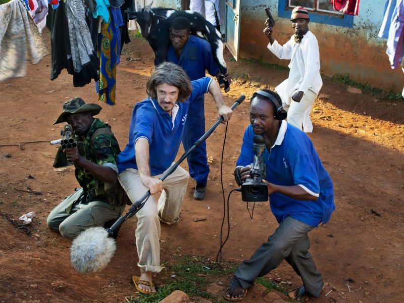 That man in the opening scene isn’t Nabwana, however. That’s Alan Hofmanis, a white American film programmer and producer whose friendship and partnership with Nabwana is the linchpin of the narrative of director Cathyrne Czubek’s film. Nabwana may be the one making movies, but Hofmanis’ life sounds like one: he was in a long-term relationship with his girlfriend, but the day he purchased the wedding ring was the day she left him. When a friend showed Hofmanis the viral trailer for the Wakaliwood movie Who Killed Captain Alex?, he knew before the video was over that he needed to go to Uganda, needed to meet the man who created this crazy and fresh piece of action cinema. Feeling unfulfilled at his current job, Hofmanis sold all his belongings, dropped his cat off with his mom, and made the move from the Big Apple to the “Home of Da Best of Da Best Movies.”