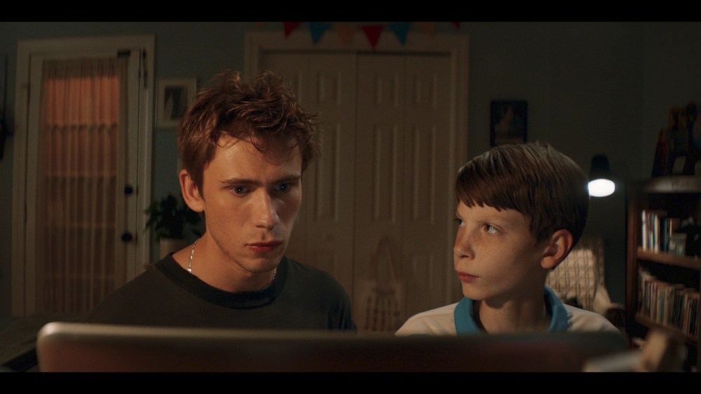 Griffin in Summer isn’t exactly a queer coming-out or coming-of-age story, although Griffin’s sexuality certainly plays in to his relationship with Brad. The more unattainable Brad appears— moving back to New York, hanging out with his vapid girlfriend (played by an over-the-top but very fun Kathryn Newton), the fact that he is an actual adult— the more desperately Griffin pursues him. Is Griffin’s behavior a little unhinged? Yes. But Blunck’s performance— at times forceful and angry, at other times jittery and unsure— along with Colia’s script ably capture that hit-by-a-freight-train feeling of young, first love, and how it feels like the world will end if you don’t hang on to it. Teague is good too, playing a sort of detached aimlessness that reads as stupidity to adults, while remaining clear why someone like Griffin would find it cool. There are other events unfolding in Griffin’s life at this time as well, things we are given just enough of a glimpse at to understand the situation: not only the feeling that Griffin’s friends are growing up and going in different directions in their lives without him, but the fact that his parents’ marriage is falling apart, lending a painful edge to the otherwise over-the-top silliness of his play, in which his pre-teen friends sip pretend martinis and shout about leaving their husbands and getting abortions.