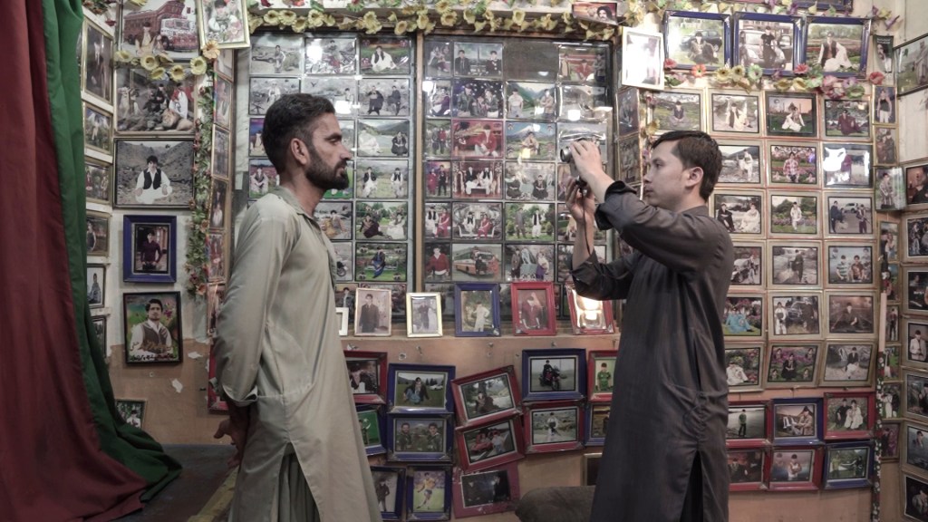 Director Danial Shah’s Make It Look Real runs a tight 68 minutes, but it’s no less thoughtful or compelling. There’s an appealing tactility to the montages that Shah uses to show the countless methods of image manipulation Sakhi employs, and a playfulness to his filmmaking and interview style. Occasionally, Shah and Sakhi will switch places, the former— himself a Pakistani native now living in Belgium— venturing in front of the camera and allowing Sakhi to question him about his life and work. Thanks to the evasiveness of his subject, Shah’s efforts to get to the heart of why Sakhi does certain things in his work don’t always lead to any profound epiphany. This is especially true of Shah’s questioning of why Sakhi lightens the dark skin of all his clients, Sakhi pointing to the fact that white is universally considered “pretty,” or the fact that so many customers want photos of them holding guns (one client who walks into Sakhi’s studio immediately comments on there being so many “violent things”). And yet, Sakhi is far from a cypher— if anything, Shah’s observations of him interestingly indicate that he possesses desires that are quite the opposite of most of his customers. When he has his own picture taken, he says that he prefers simple backgrounds, no props. He also expresses a wish to leave Quetta and move aboard, as Shah did. Make It Look Real never ventures outside the confines of the bazaar and the studio, making Sakhi’s entrapment that much more potent. But it also makes the desires of the people there sing that much louder, resulting in a crowd-pleasing and introspective portrait of the intersection between image-making, social and economic class, and wish fulfillment.