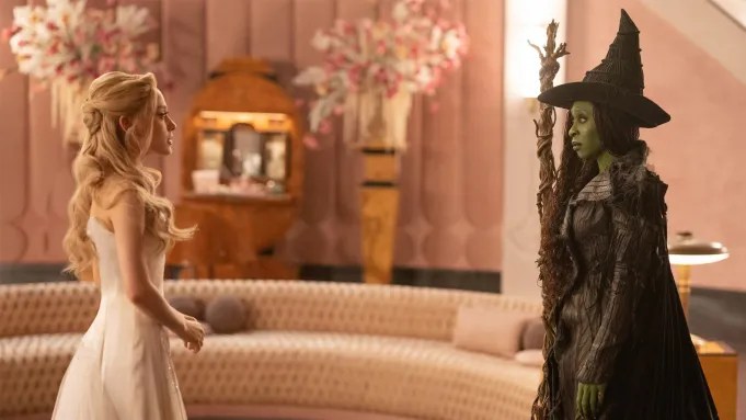 That flatness carries over to every other aspect of the film, which is almost shockingly lifeless and dull and— like many sequels— much darker than the first installment. It isn’t Erivo and Grande’s fault; they are powerhouses, but their lack of shared screen time deprives the film of the humor and heart that their enemies-to-friends relationship brought to Wicked (gone also are the first half’s messaging of accepting yourself and others, and taking pride in being different). There’s also the simple fact that almost all of the musical’s great songs are in the first act of the show. Erivo’s show-stopping rendition of “No Good Deed” is a much-needed wake-up call in the middle of the movie, but most of the other songs are just sort of there, particularly the two new songs written for the movie, “No Place Like Home” (a solo for Elphaba) and “The Girl in the Bubble” (a solo for Glinda intended to serve as a sort of awakening for the character). All of that just serves to make the poor blocking and shot compositions of the musical numbers that plagued Wicked even more evident. Chu is so averse so pulling the camera back to showcase the choreography, and the scores of dancers backing up his leads, and the physicality of his cast, opting instead for choppy edits and medium shots that find the characters awkwardly placed in frames where its difficult to know where to look. Visually, Wicked: For Good is even less vibrant than its predecessor, and many of the scenes are still weirdly backlit, washing out any color in the production design.