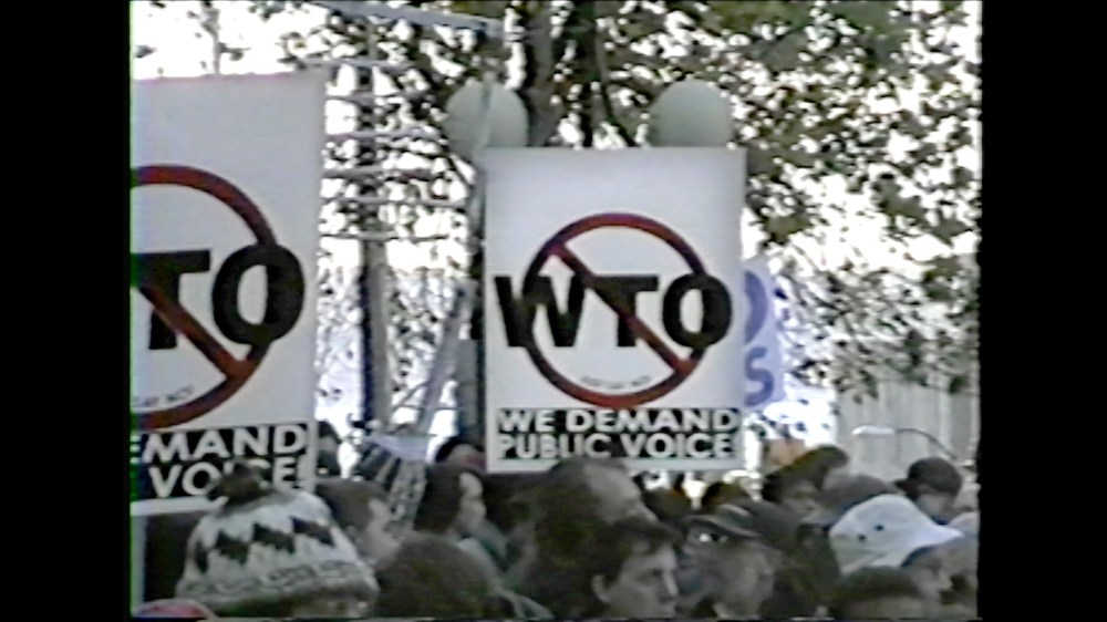 WTO/99 is as thrillingly paced as a narrative feature, with a clear arc that builds in tension to an victorious conclusion, even if its a more symbolic short-term win than a tangible long-term one. The delegates may have left the conference having not been able to complete their negotiations, but the WTO endures as a massive force governing over of international trade with 166 member countries, even as climate change and inequality caused by lack of protections for underdeveloped countries and individual citizens have only become more pressing issues in the over 25 years since the 1999 protests raised them. WTO/99 further draws perhaps a too literal direct line between then and now, concluding with a montage of footage of subsequent large-scale demonstrations occurring throughout the world, ending in 2020. But it’s the act of witnessing so many people uniting from across political spectrums and class divides— a concept that feels unfathomable in today’s intensely divisive political atmosphere— to stand up against a body that violates human rights in favor of growing big business that’s truly galvanizing. WTO/99 further serves as a searing historical document, made possible by those who had the foresight to film the event as it unfolded. One participant, speaking at the hearings that explored the city’s response to the incident in its aftermath, sums it up the best: “I think we have to thank the inventor of the video camera.”